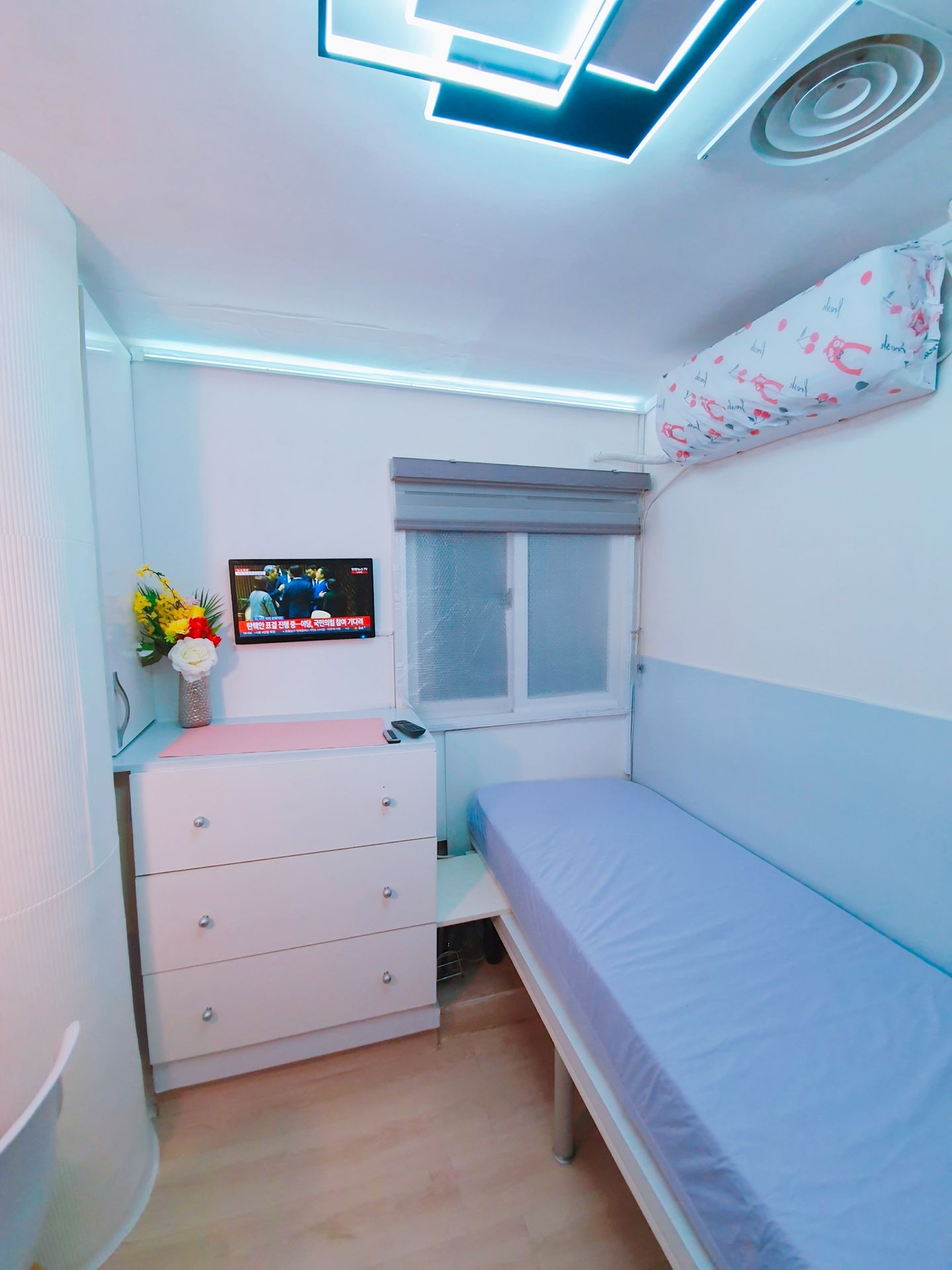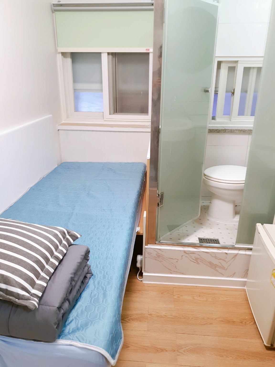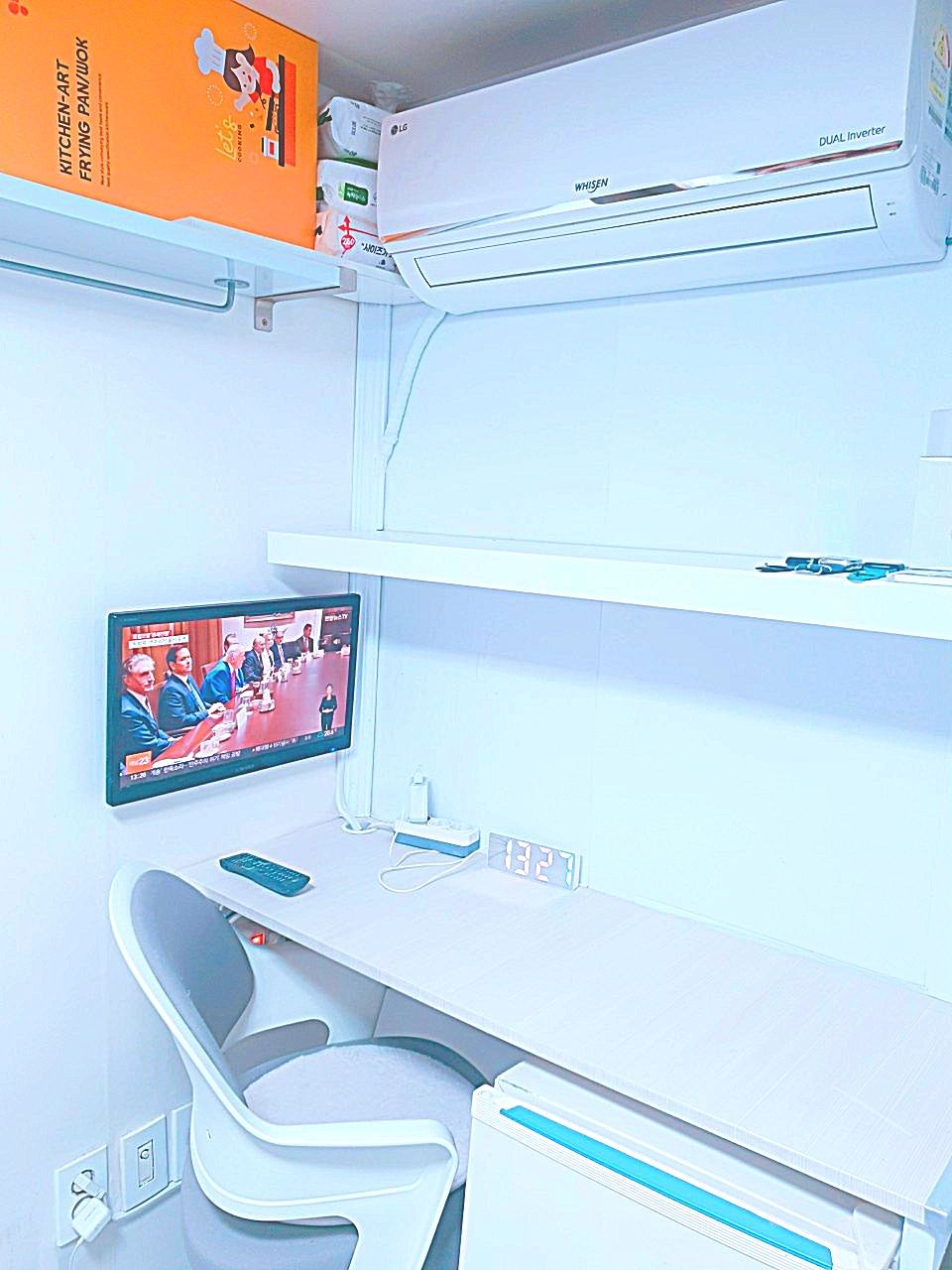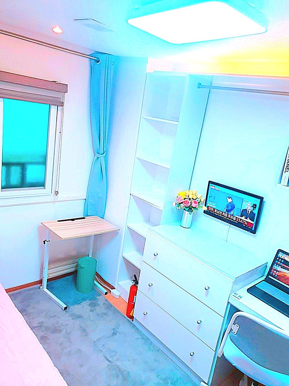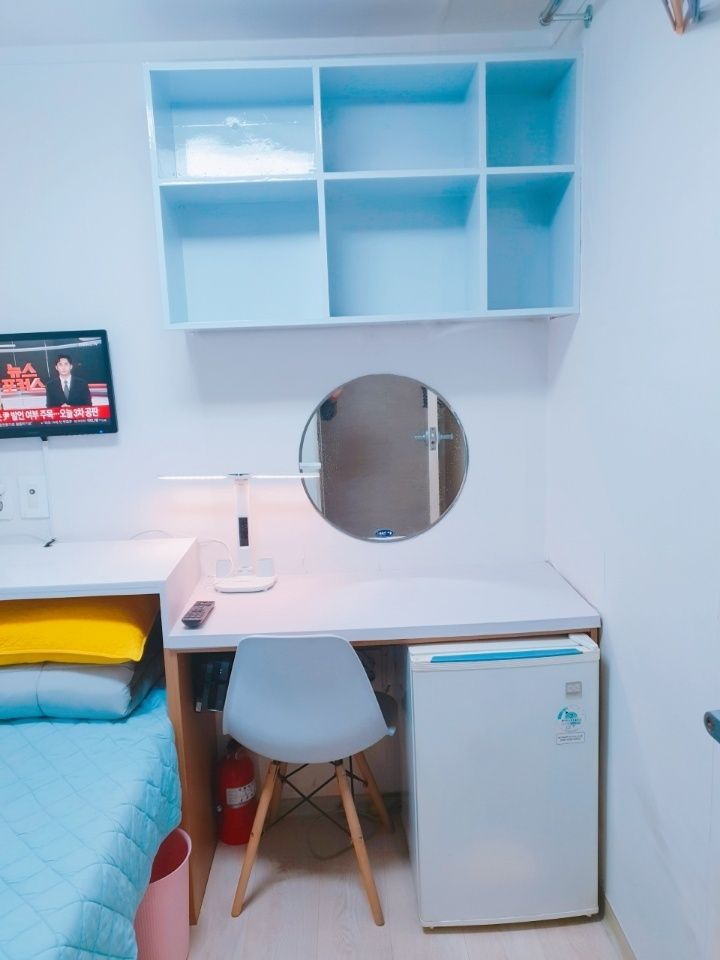3. 최근 인수후 개별에어콘을 원룸과 외창방미니룸에 설치하고, 침대 높이를 높여 침대 아래에도 캐리어,박스 등 개인용품을 보관할수 있게 새단장을 하여 세련되고 깔끔.