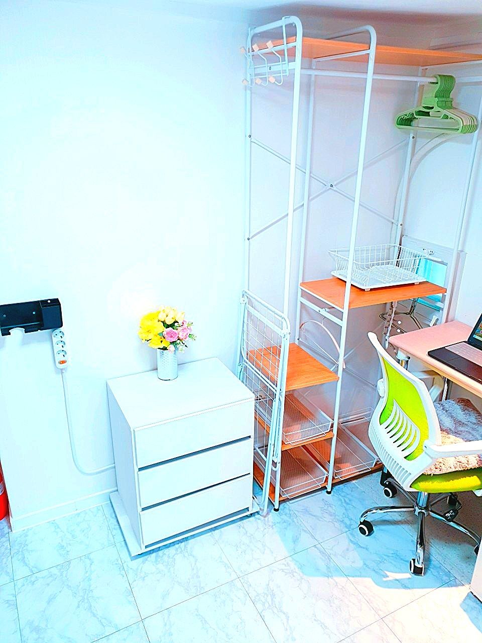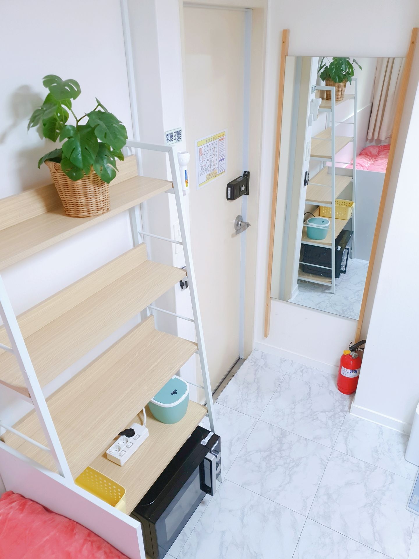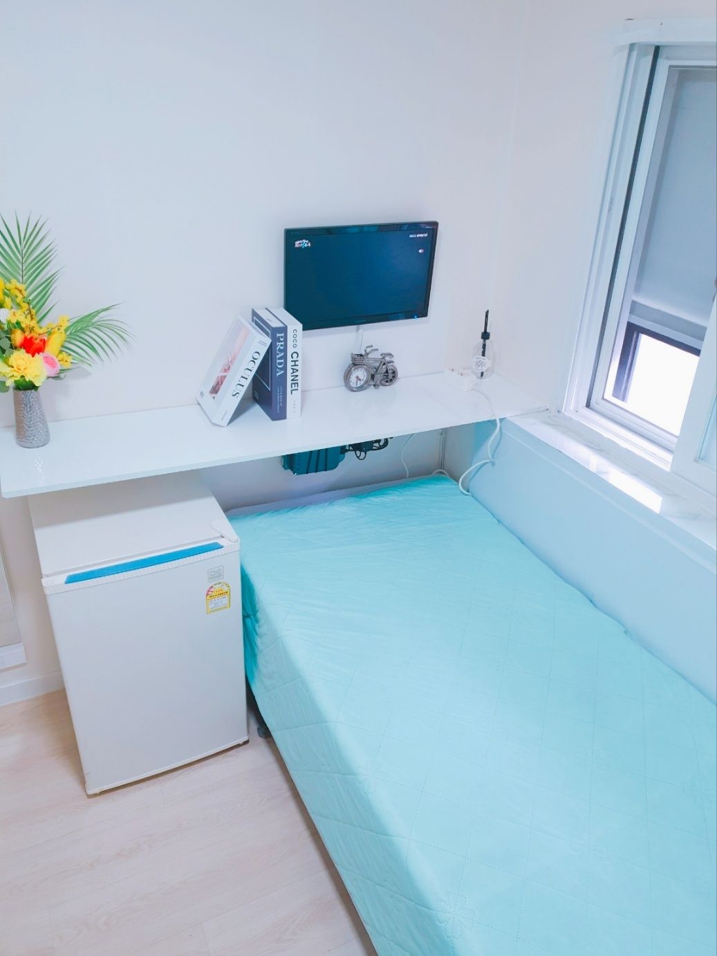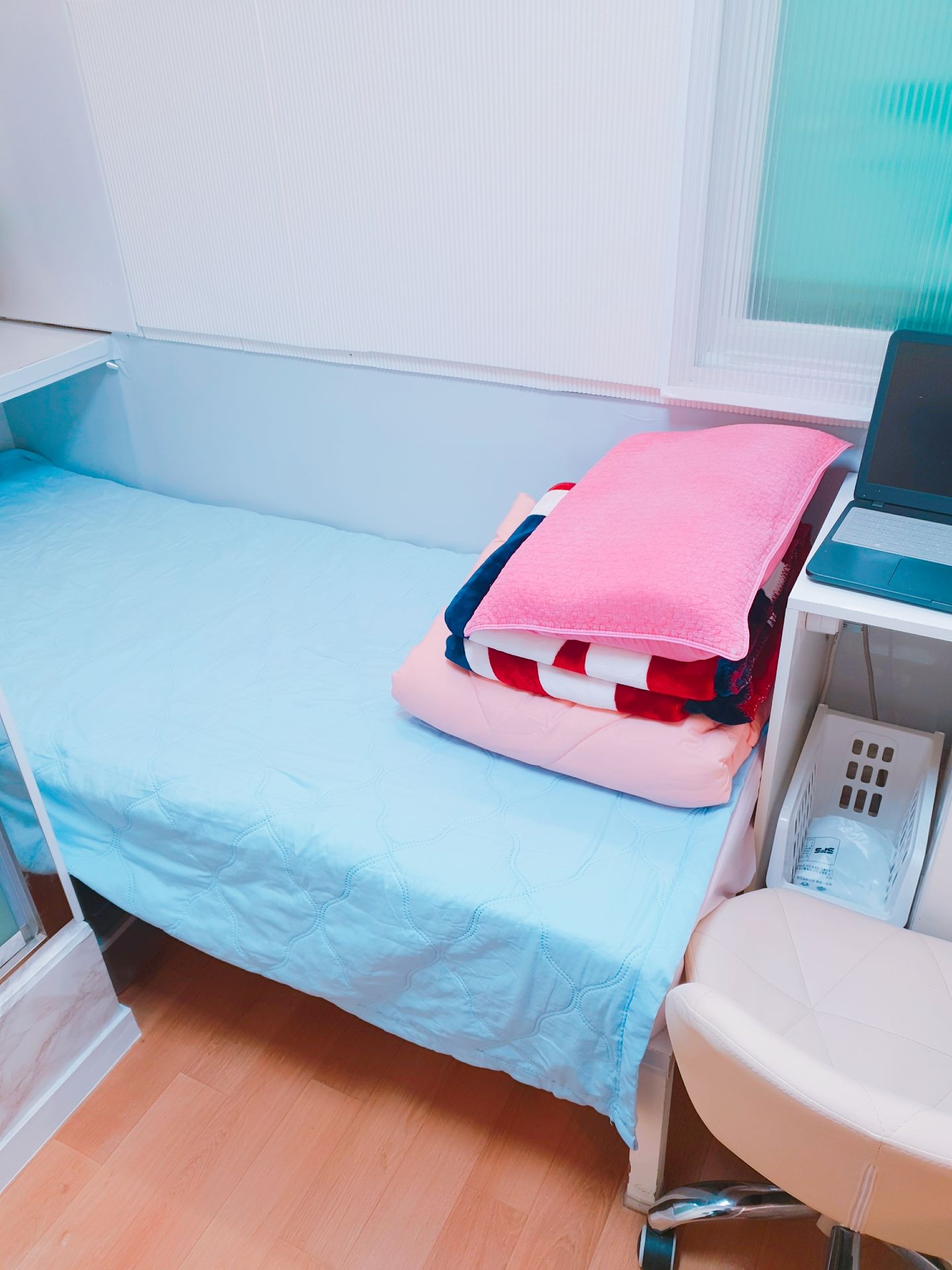 3. 최근 인수후 개별에어콘을 원룸과 외창방미니룸에 설치하고, 침대 높이를 높여 침대 아래에도 캐리어,박스 등 개인용품을 보관할수 있게 새단장을 하여 세련되고 깔끔.