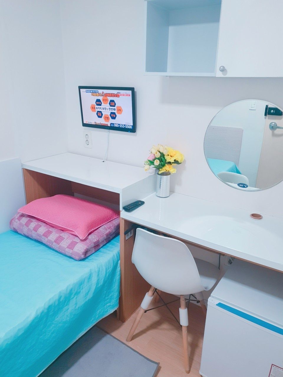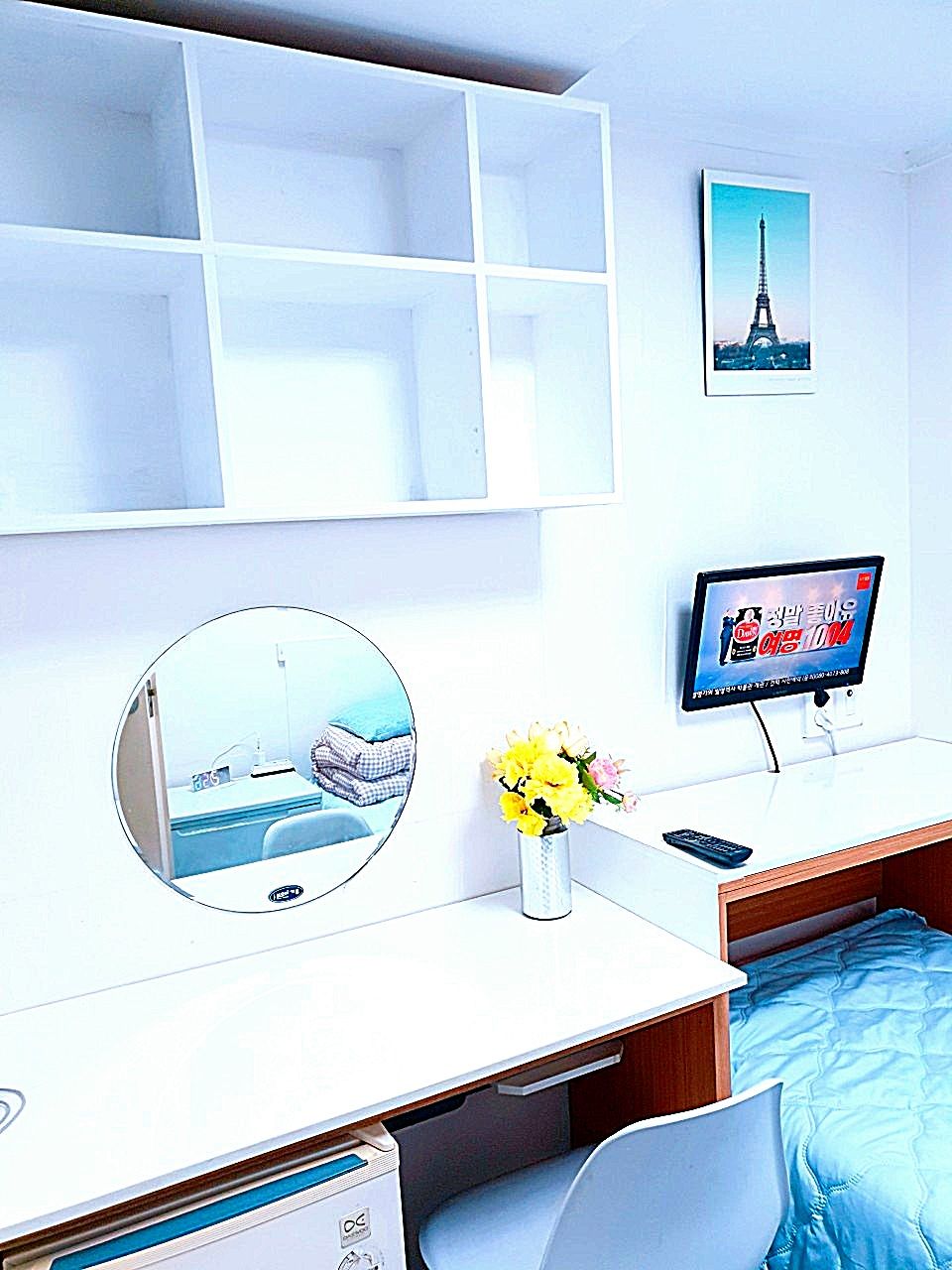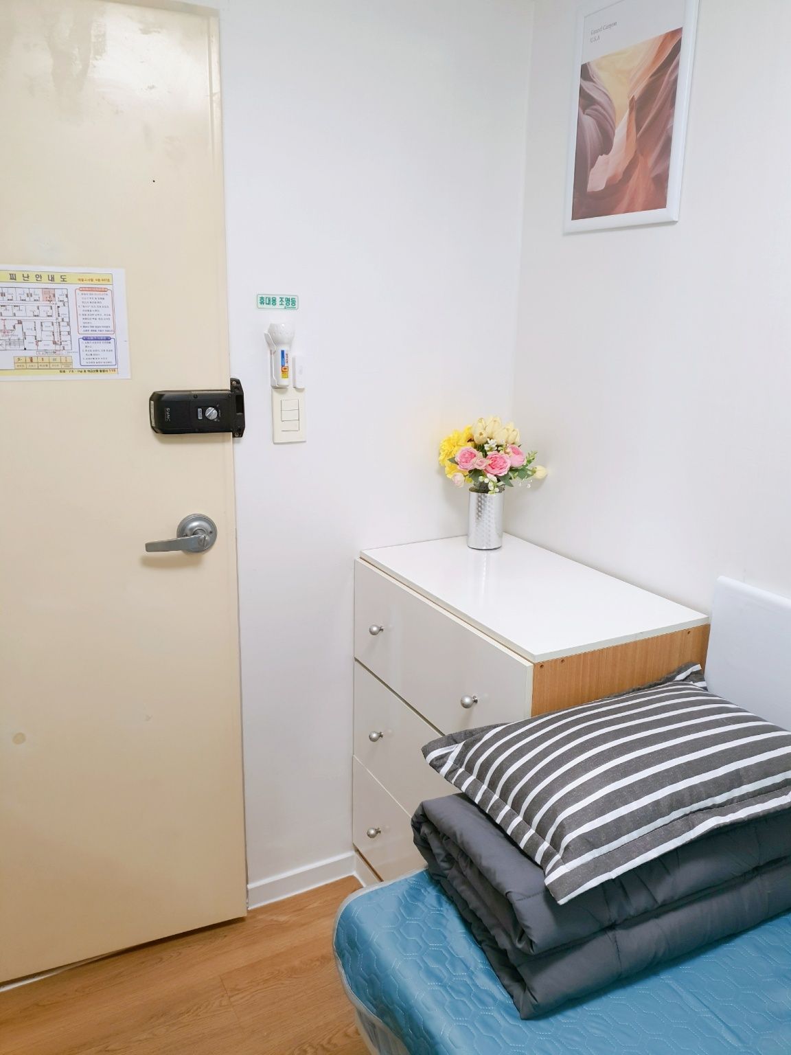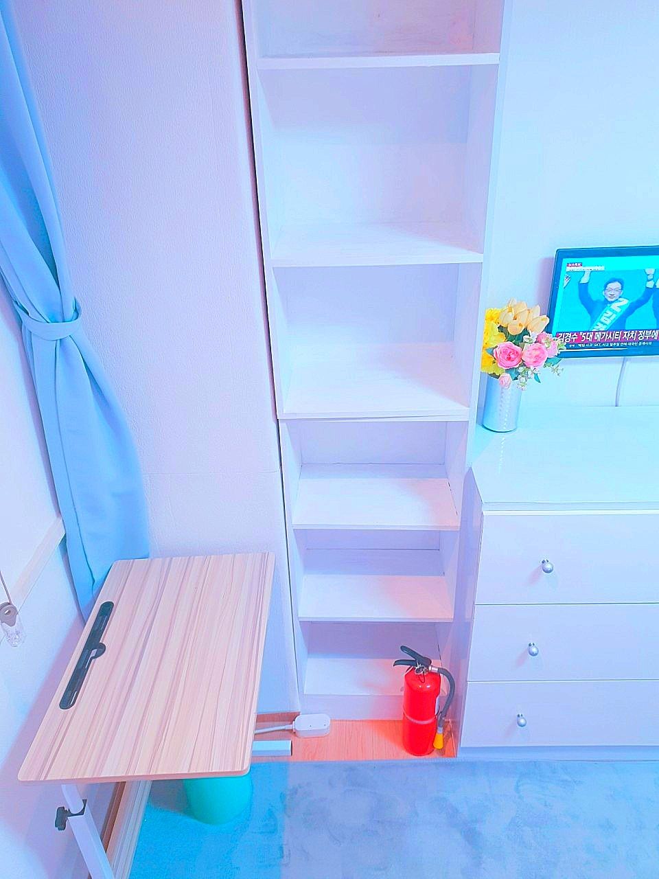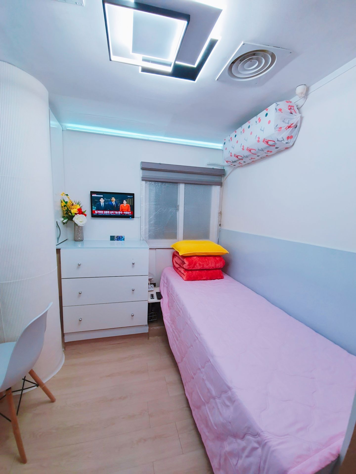 3. 최근 인수후 개별에어콘을 원룸과 외창방미니룸에 설치하고, 침대 높이를 높여 침대 아래에도 캐리어,박스 등 개인용품을 보관할수 있게 새단장을 하여 세련되고 깔끔.