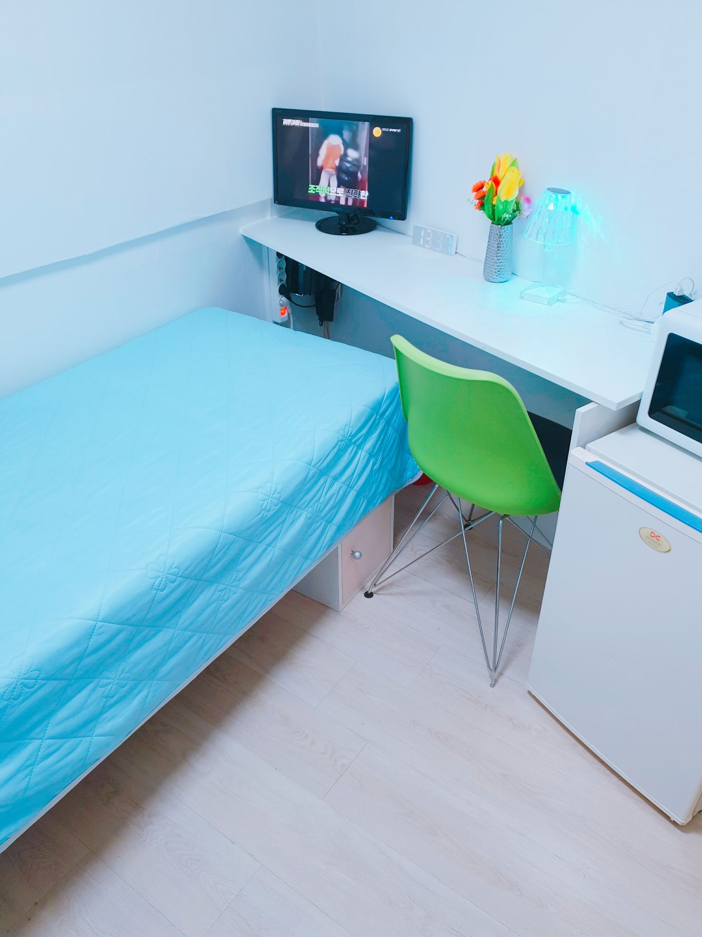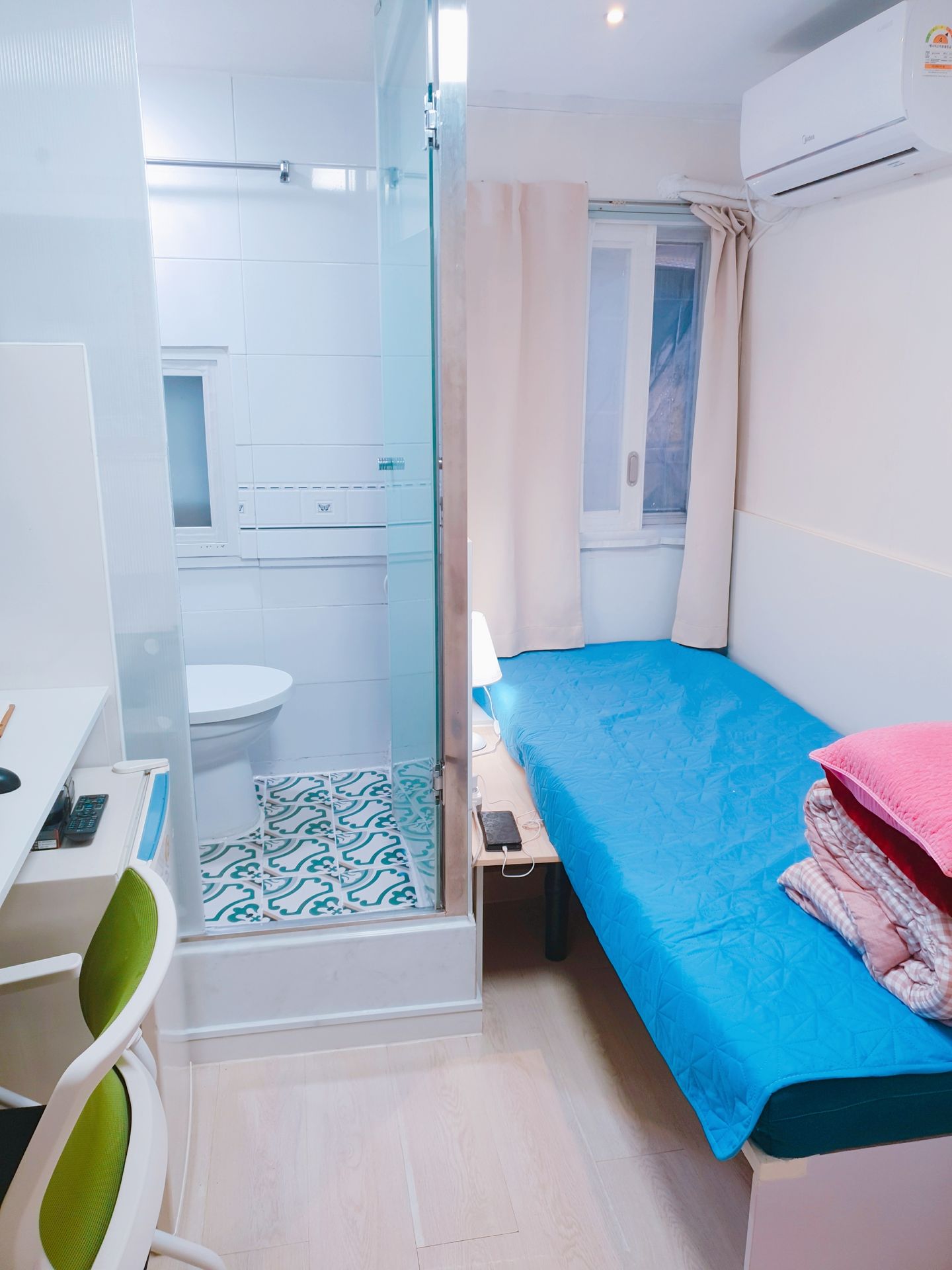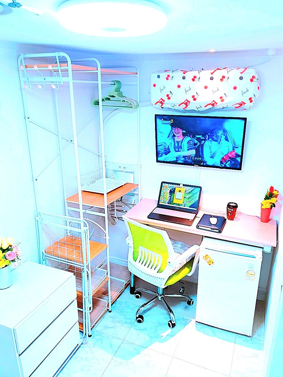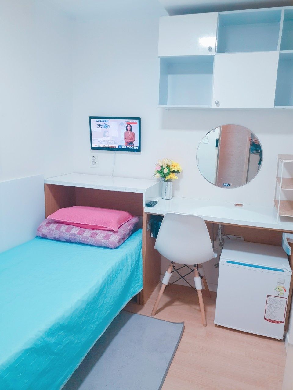 3. 최근 인수후 개별에어콘을 원룸과 외창방미니룸에 설치하고, 침대 높이를 높여 침대 아래에도 캐리어,박스 등 개인용품을 보관할수 있게 새단장을 하여 세련되고 깔끔.