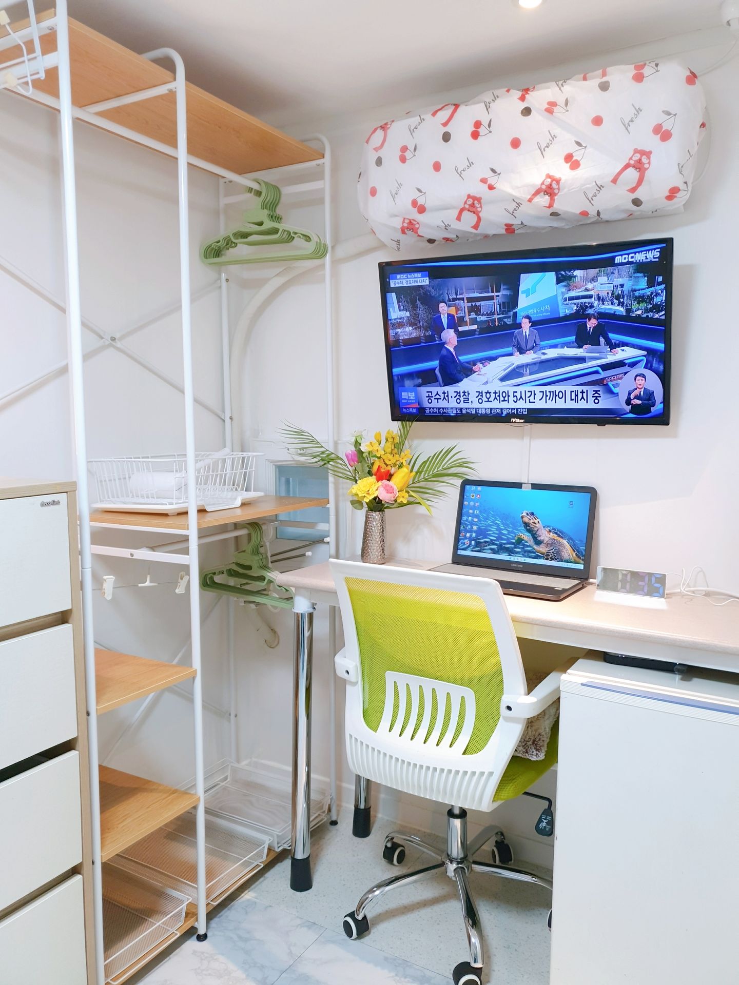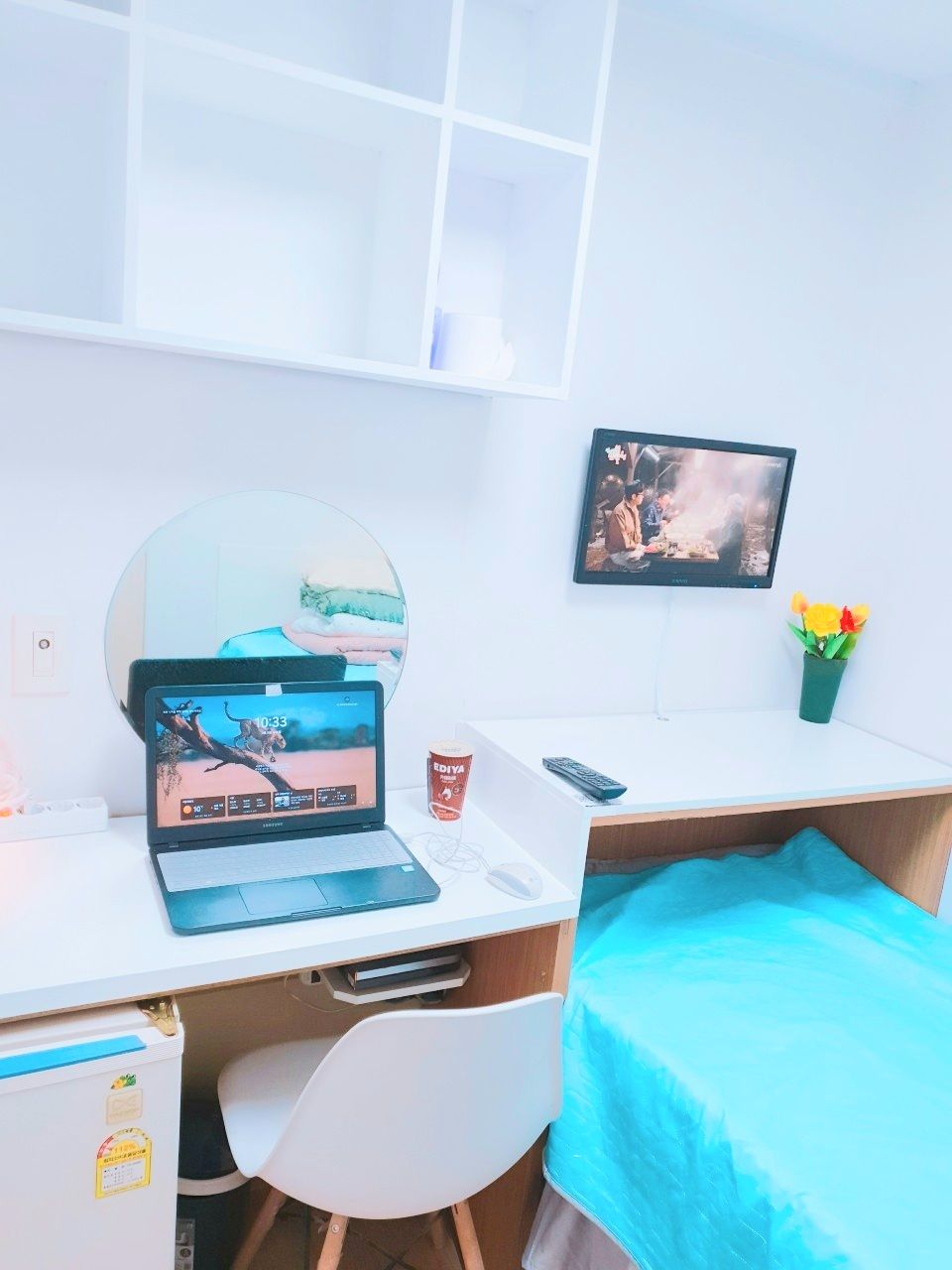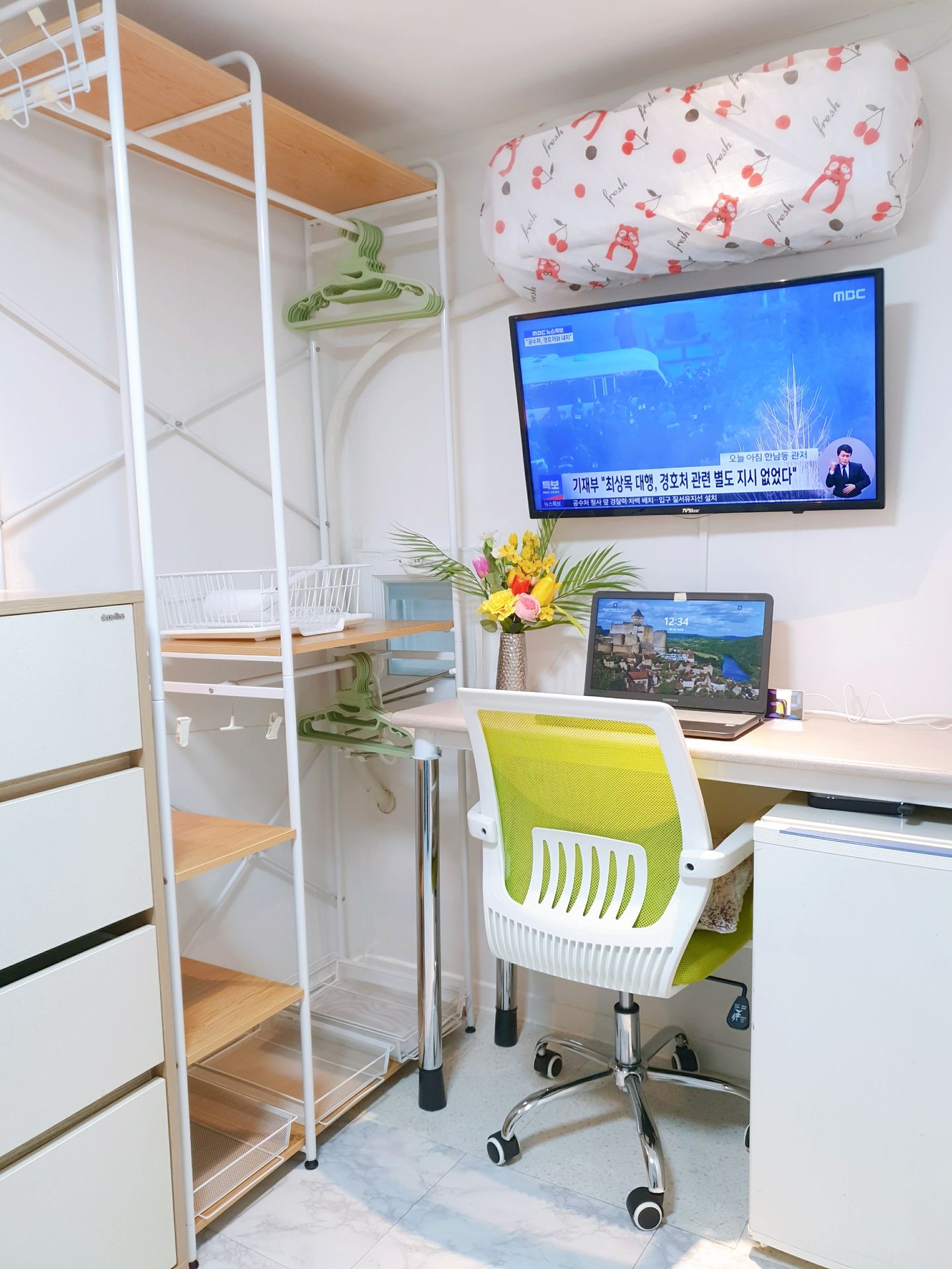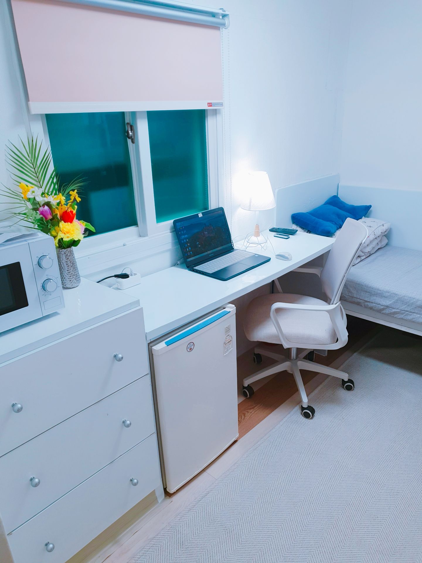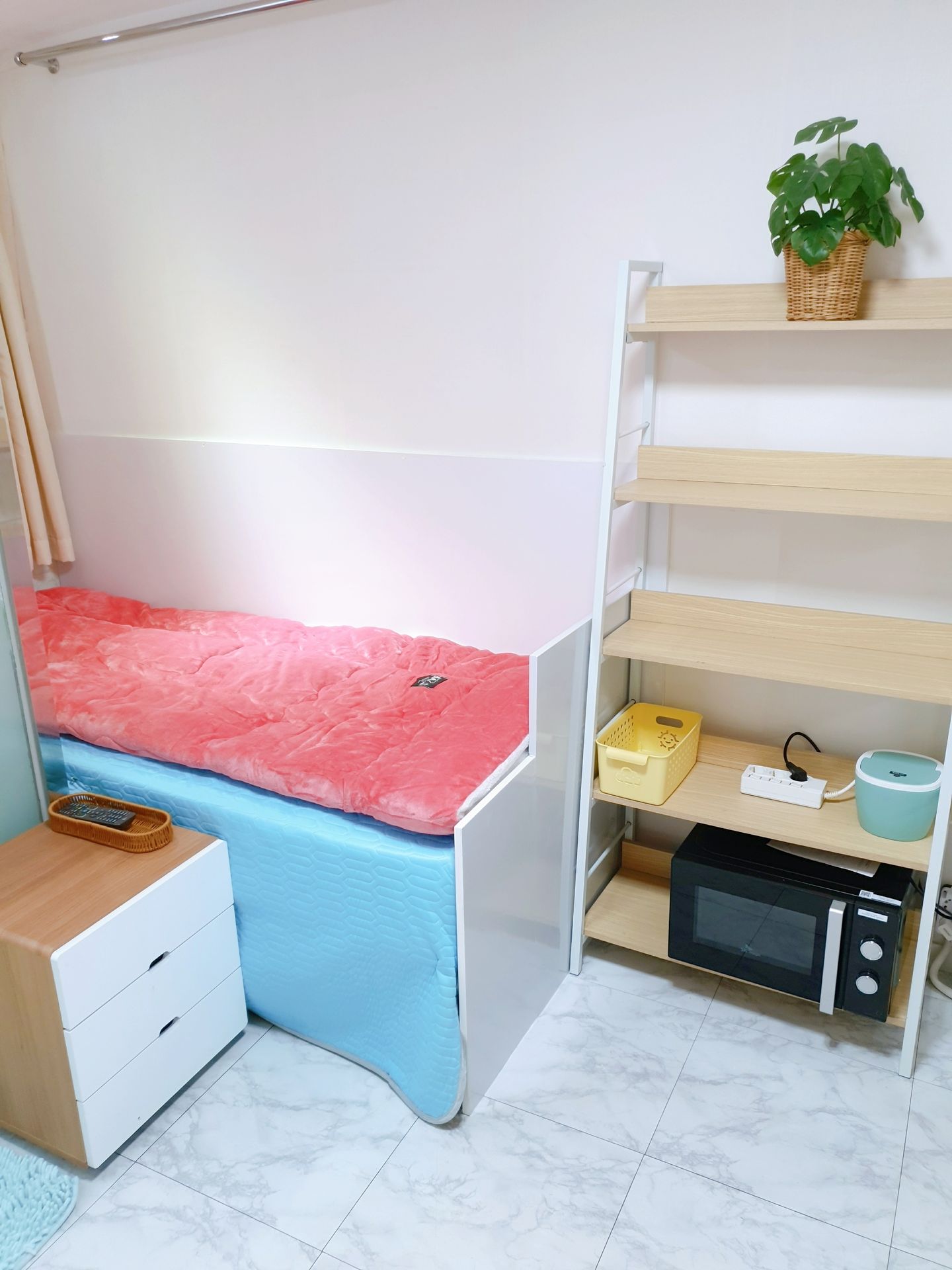 3. 최근 인수후 개별에어콘을 원룸과 외창방미니룸에 설치하고, 침대 높이를 높여 침대 아래에도 캐리어,박스 등 개인용품을 보관할수 있게 새단장을 하여 세련되고 깔끔.