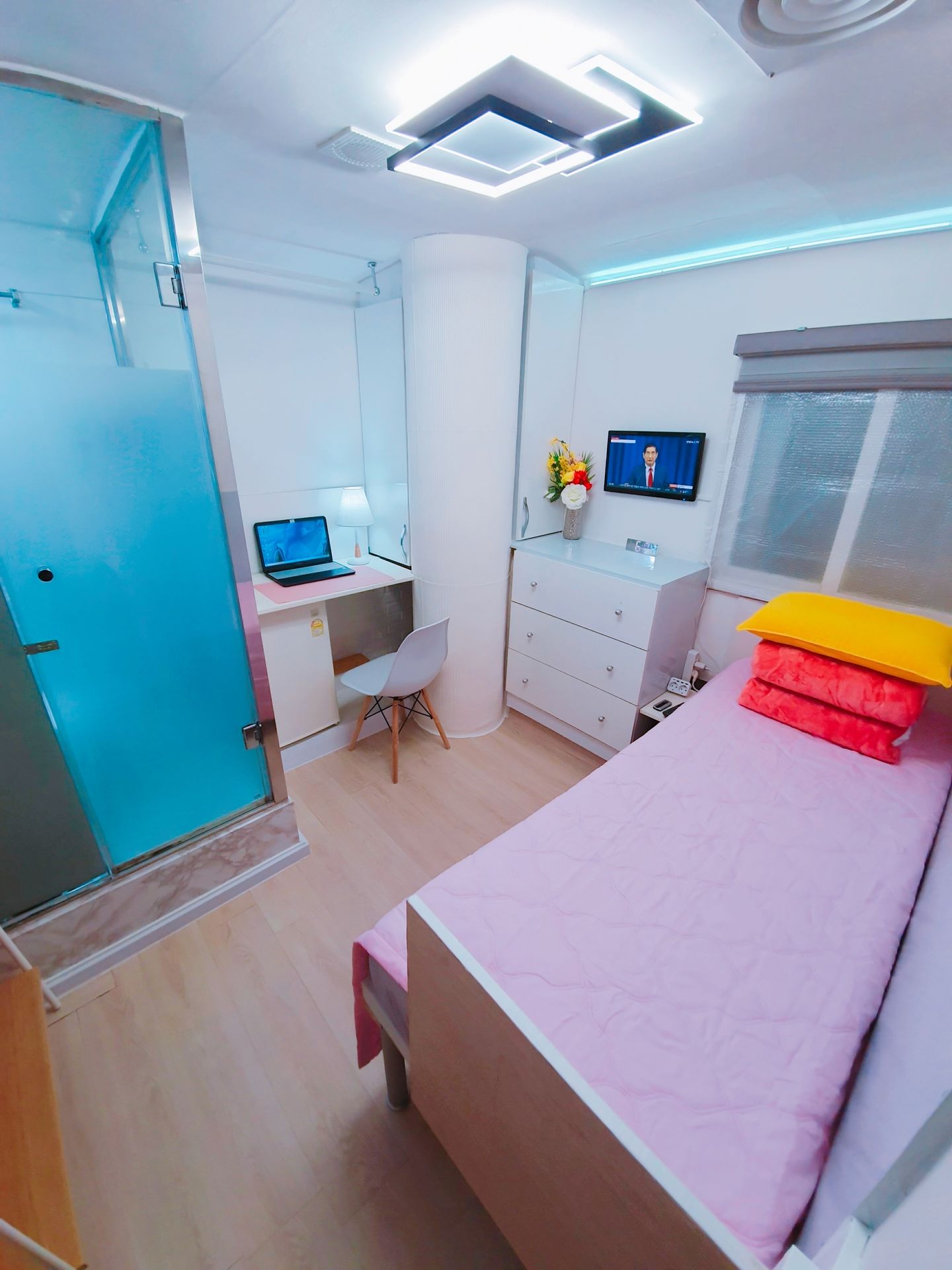5. , 초고속 기가급 유무선 인터넷과 각방 개별 무선 와이파이 아이디와 패스워드가 부여되어 있으며, 100여개 이상의 TV채널 등을 시청하실수 있습니다